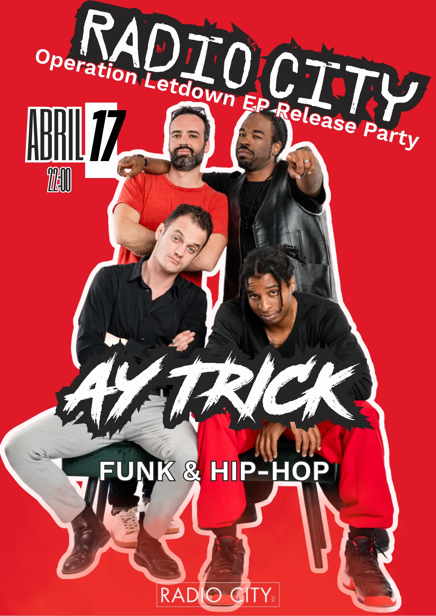 Ay Trick is your new favorite Funk & Hip Hop band. After their latest sold-out show, they’re back with a new concert on April 17th that promises to be one of the best live experiences you can find in the city. Get ready to enjoy Ay Trick’s irresistible, dance-inducing sounds at RADIO CITY VLC.